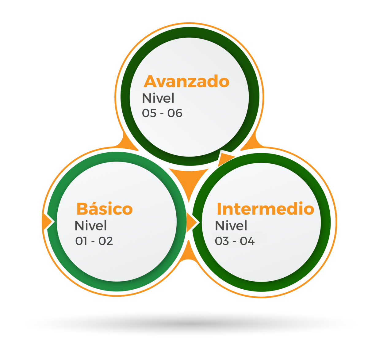 Utilizamos el Marco Común Europeo de Referencia para Lenguas (MCER) para definir el nivel de conocimiento del idioma inglés en nuestros estudiante.